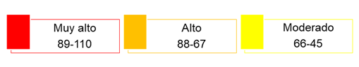 A partir de lo anterior, se llevó a cabo el análisis de confiabilidad del instrumento, para lo cual se calculó el alfa de Cronbach, obteniendo un resultado de 0.968. De igual forma, se propone una clasificación de los niveles de tecnoestrés, presentada en la Figura 2.