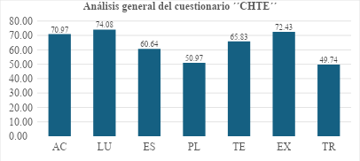 La evaluación integral de las escalas que conforman el cuestionario de Hábitos y Técnicas de Estudio ´´CHTE´´, realizada con 103 estudiantes, revela resultados significativos (Figura 2).